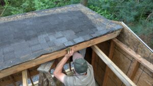 On June 9th-12th, I was able to put tar paper around the shack, and putt most of the siding on.